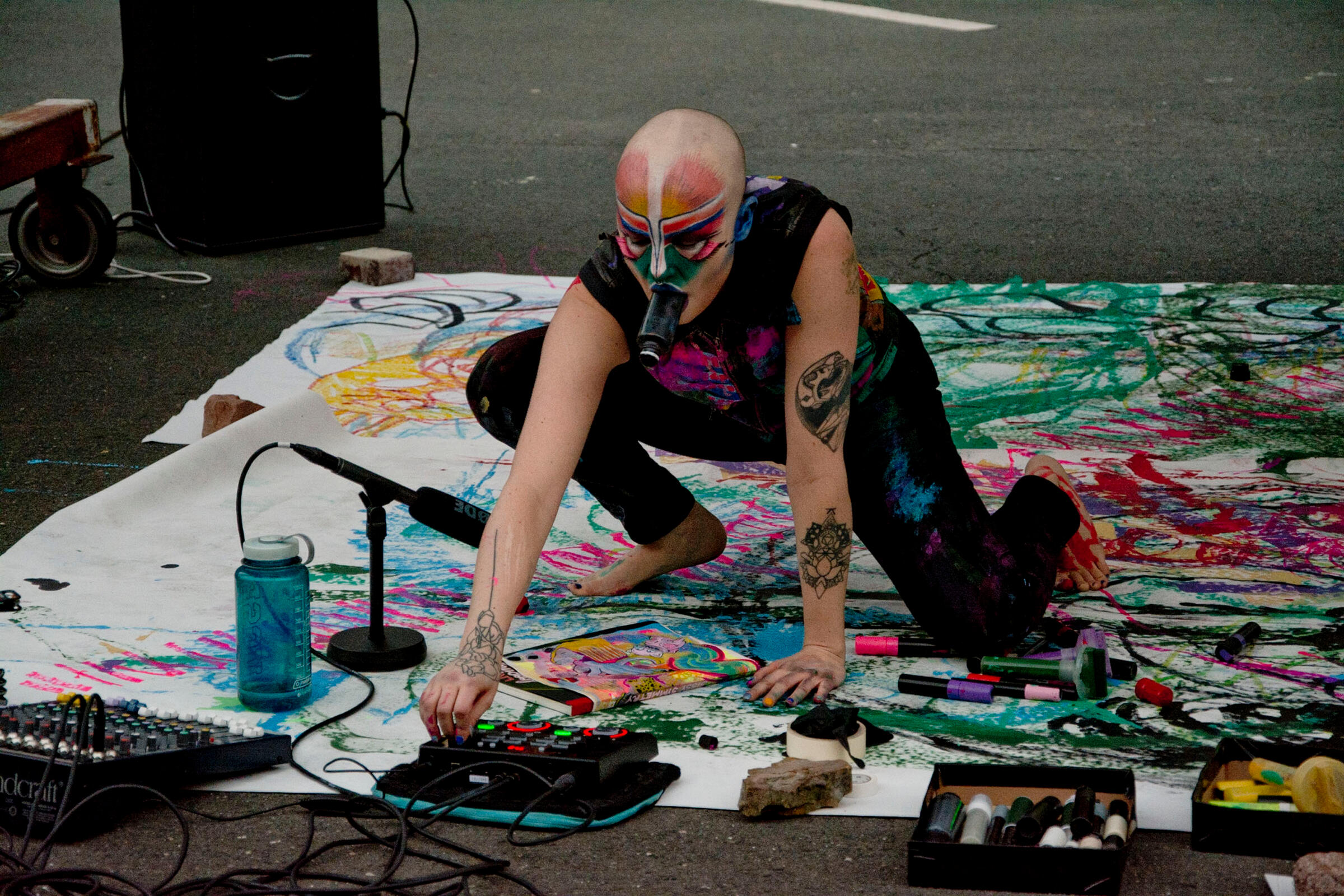 Sissy Symmetry (2019) is a looping, durational live drawing and noise performance at dusk, where shifting natural light marked the passage of time.
