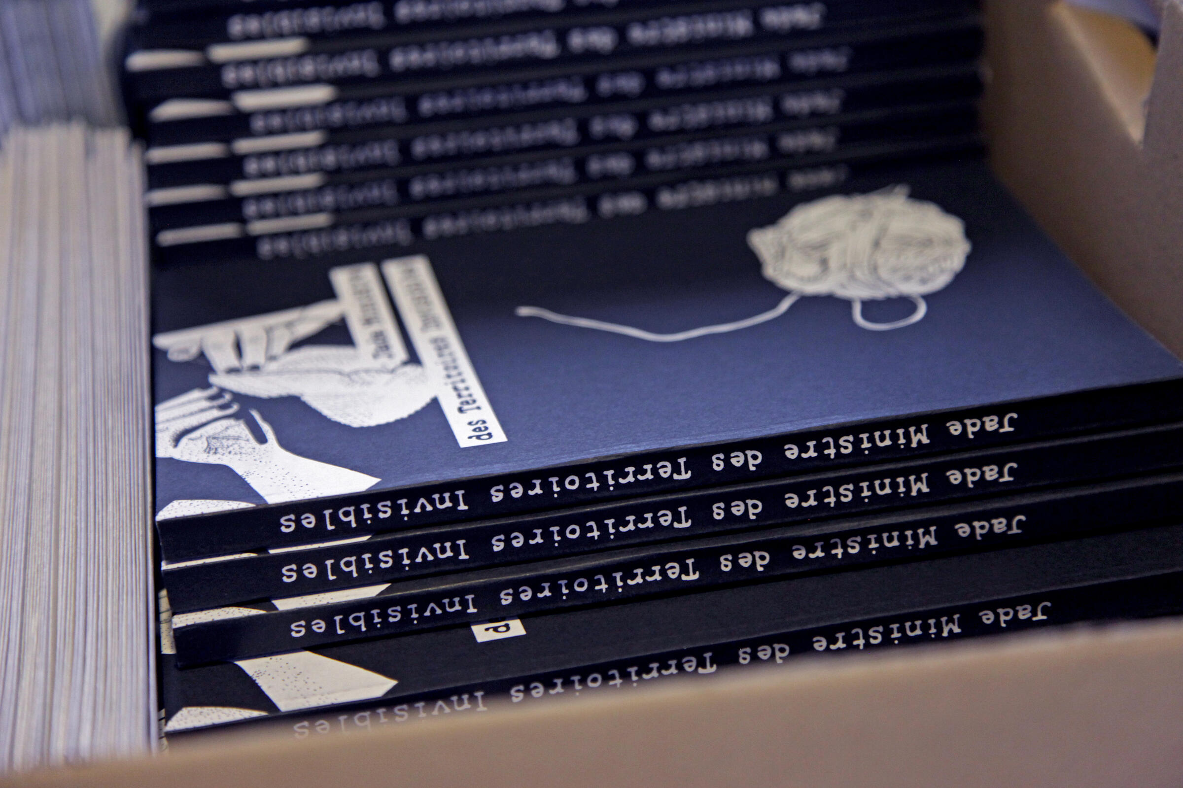 Jade Ministre des Territoires Invisibles (2014) is a 120-page experimental graphic novel, published anonymously in 49 hand-made copies, following a character navigating precarity and inverted enunciative positions.